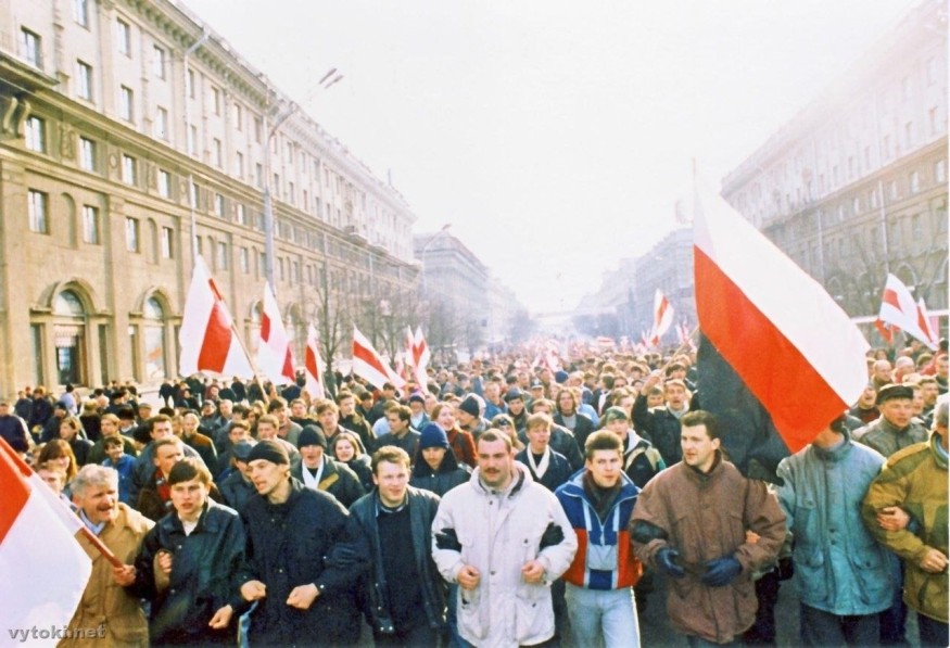 У той час як у Крамлі званілі келіхі, вуліцы Менска запоўнілі тысячы людзей. Гэта быў адзін з самых масавых і эмацыйных мітынгаў таго часу.