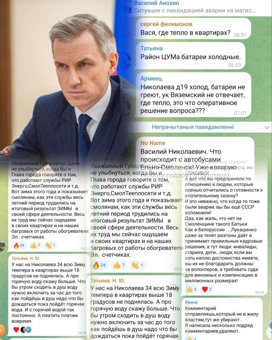 Так называемый губернатор Смоленской области Василий Анохин отчитался о ситуации с коммунальной аварией в Смоленске.